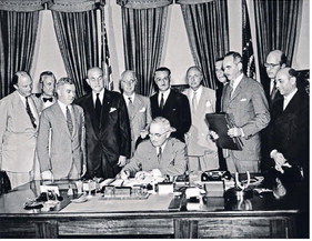 FROM TOP: BETTMANN ARCHIVE/ GETTY IMAGES; CORBIS/ GETTY IMAGES; CHRISTIAN HARTMANN/ PRESS POOL/ AFP/ GETTY IMAGES From the liberation of Paris (above) to the creation of NATO (right), Europeans and Americans once forged deep bonds from shared values.