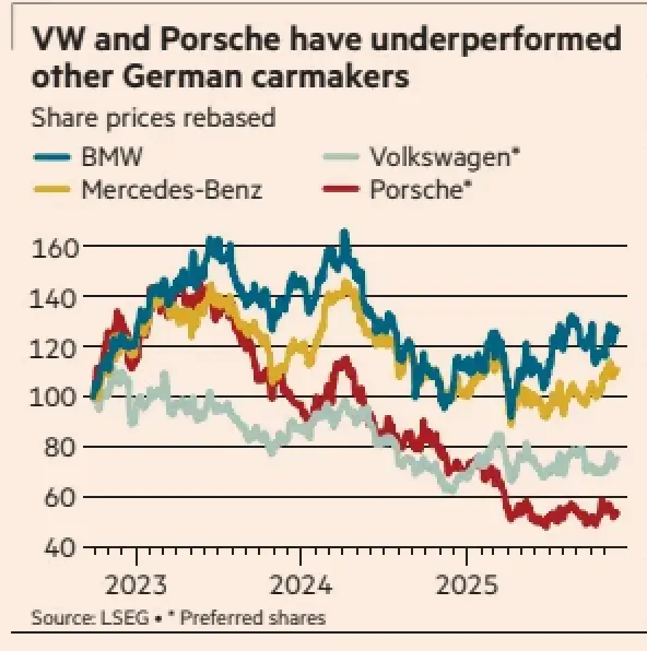 It has two classes of shares. The Porsche-Piëch family controls 53 per cent of the voting rights through its holding of ordinary shares. The Qatar Investment Authority owns a further 17 per cent. But most other institutional shareholders own so-called preference shares, which do not carry votes.
